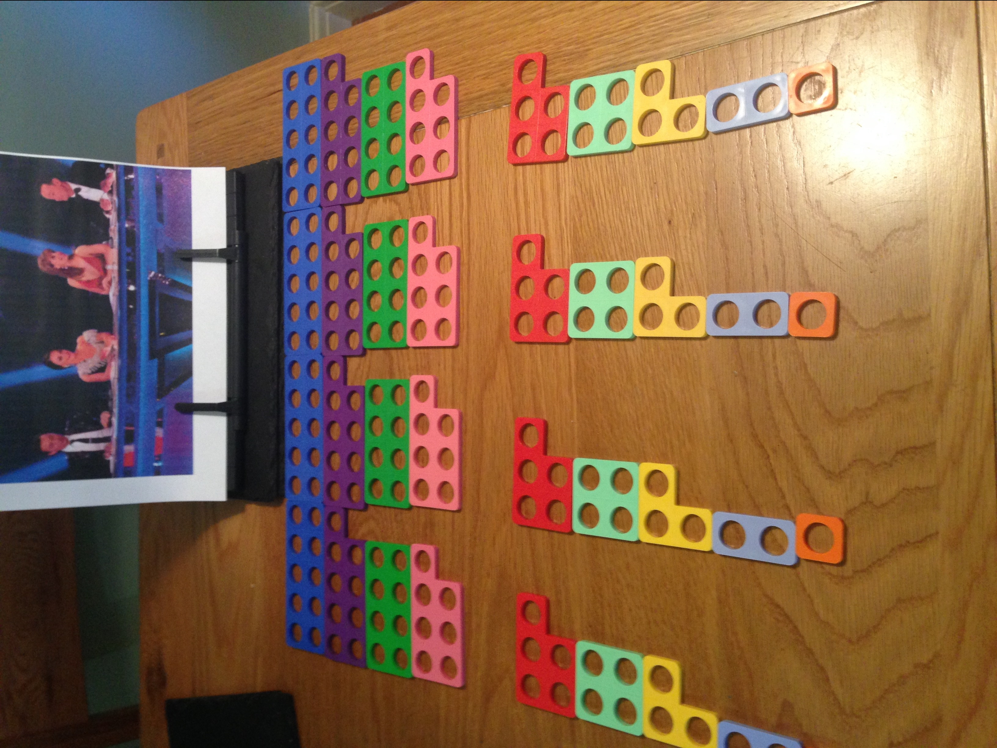 We found it very difficult last week to keep track of the scores( they appear on the screen for a matter of seconds) ..so this week we are going to get out the Numicon shapes! We have 4 sets of 1-10 shapes for each judge so we can select the Numicon shape each time and then put the 4 shapes together to match the total. – Look out for next weeks update to see how we did!