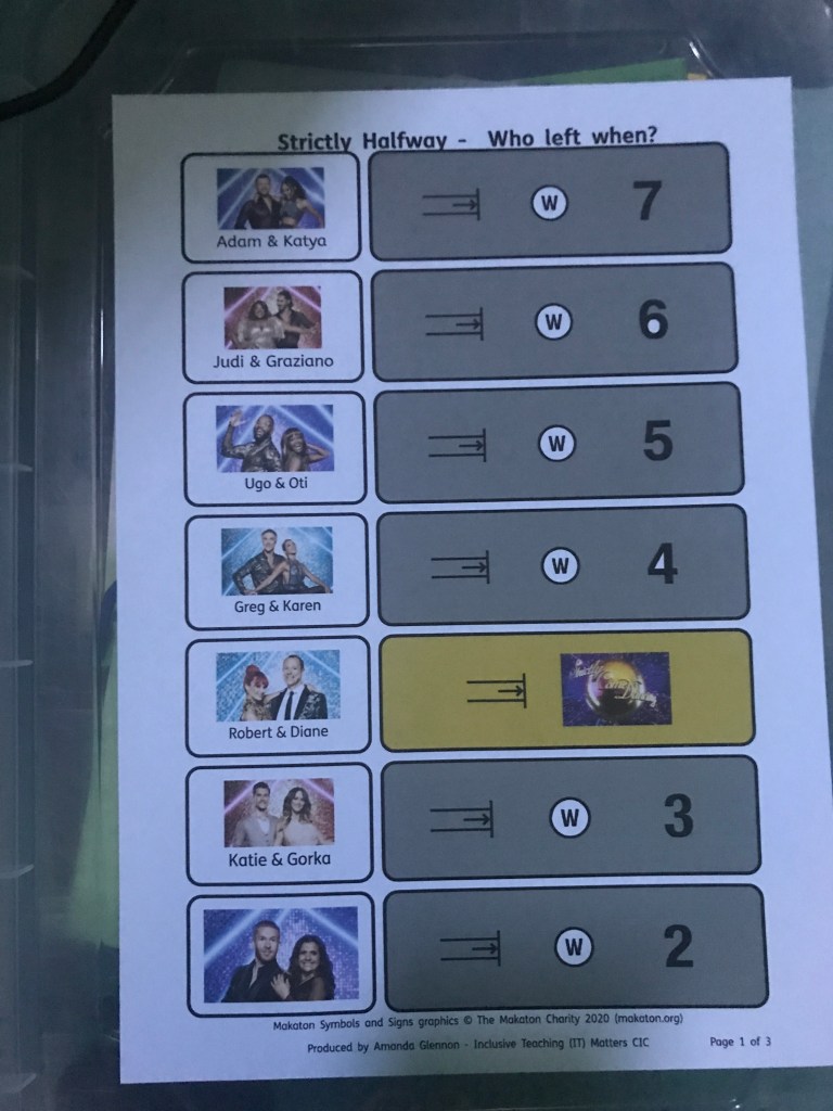 So September 8th marked the star of the 2018 Strictly session and to kick start getting to know this seasons celebrities and new dancers we used a Makaton Symbol Matching game.