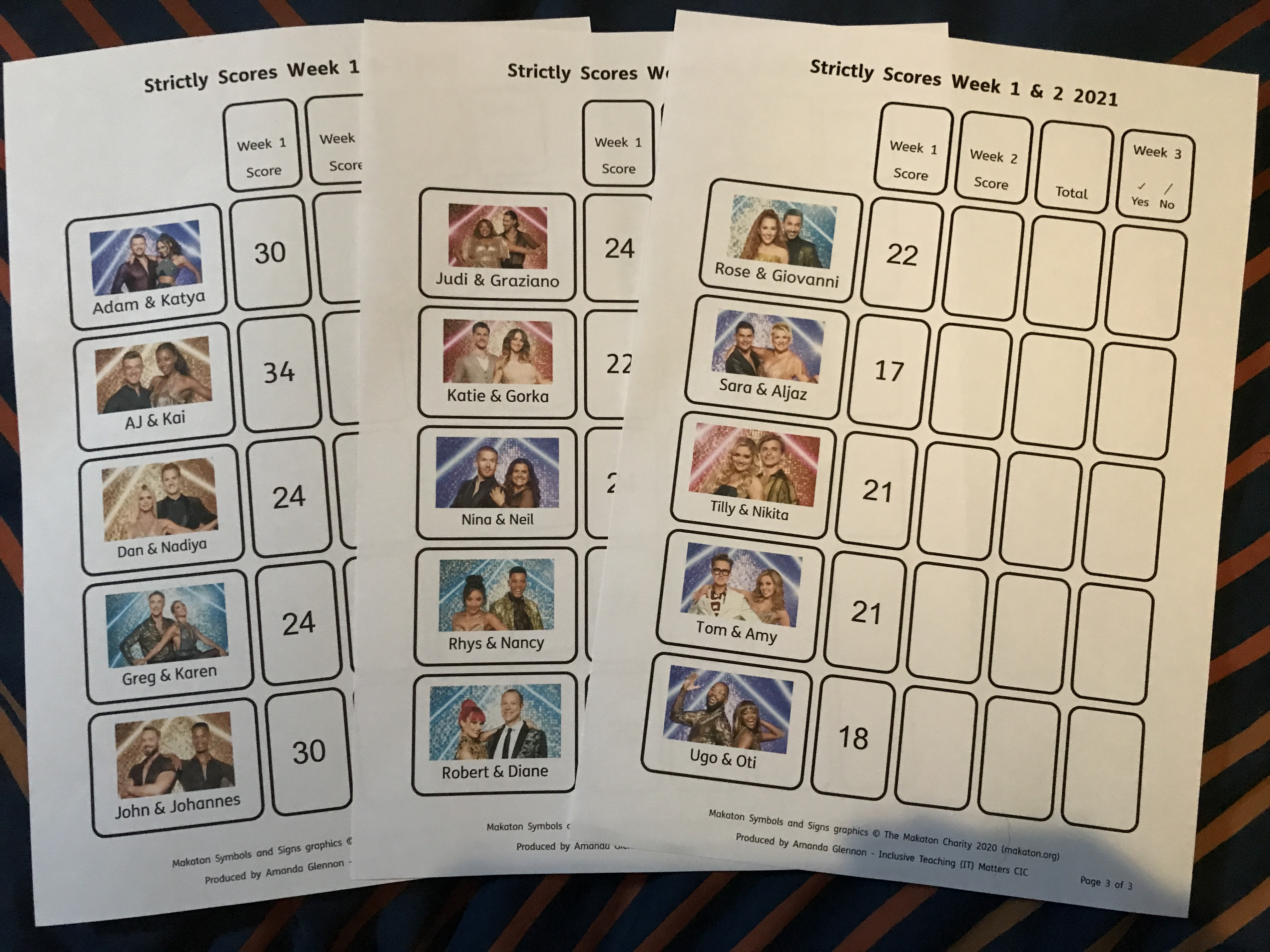 This week we have a new score card to combine week 1 & week 2 scores as well as see who is in the dance off and who isn’t going through to week 3. We also have a series score card to update each week and keep a track of those scores.