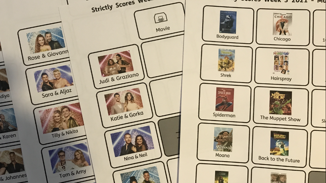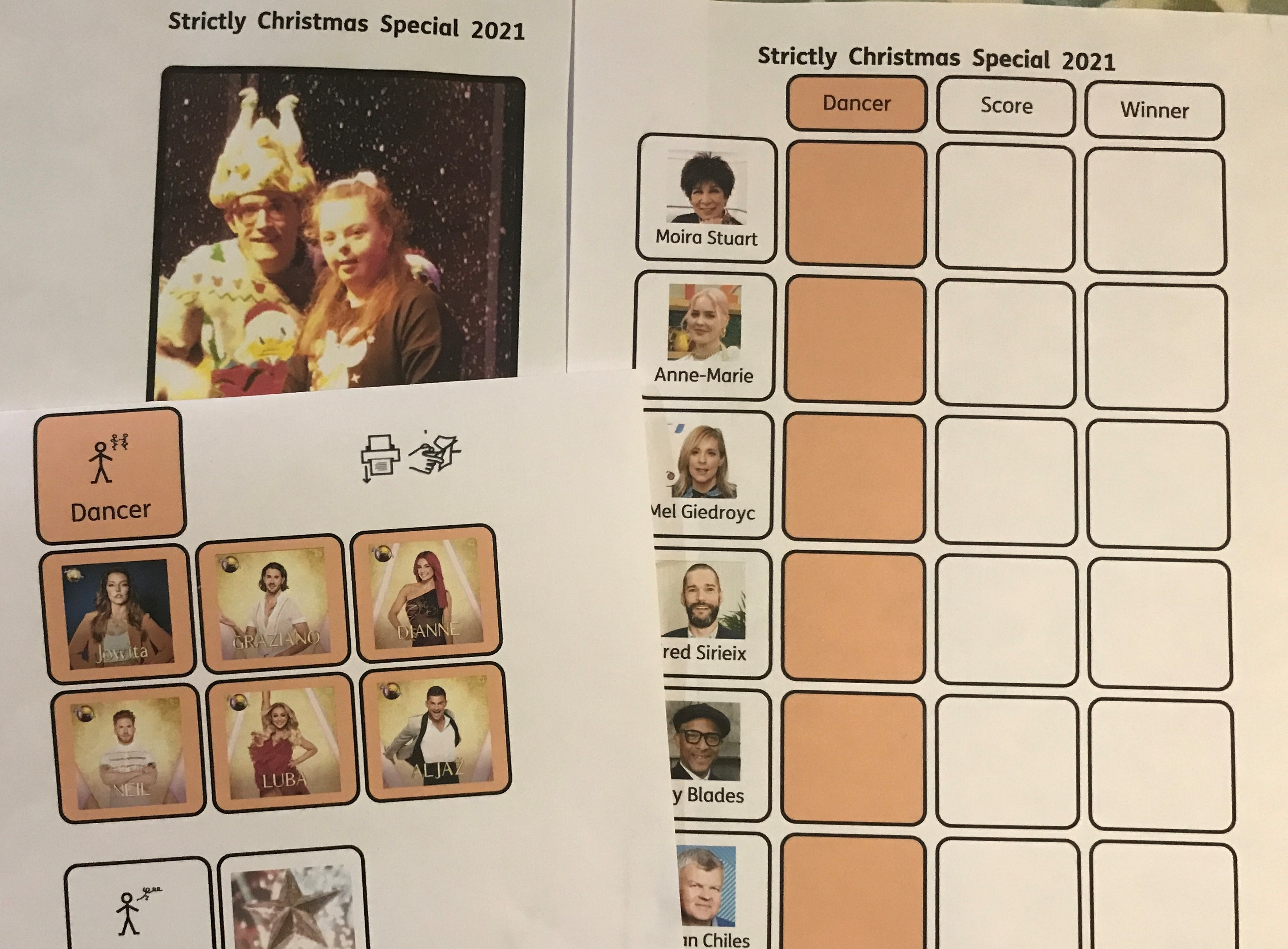 Our score sheet that we use at home has Makaton symbols to show what the celebrities really do – so we can get to know them a bit more…but this download doesn’t have the symbols due to copyright…you can take our lead and draw them on yourselves – a good preshow activity.